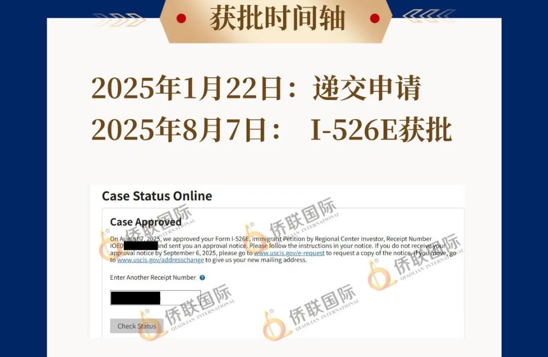 而在我们侨联国际,就有不少这样的成功案例。好比近期不到7个月获批I-526E的申请人,过程不仅顺利,速度还着实惊人!