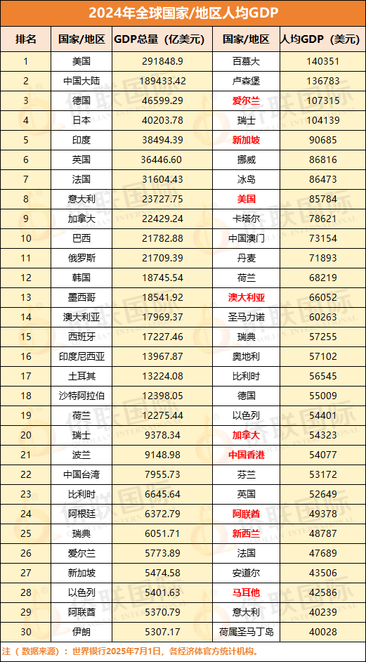 提及全球较为富裕的国家,很多人是不是最优先想到的是美国、中国或德国这样经济总量庞大的国家。然而,若以人均GDP来衡量,一些“小二富”的国家却占据了榜单前列。近期以来,国际货币基本组织(IMF)发布了2024年全球国家和地区人均GDP排名,其中人均GDP排名靠前的国家仍以欧美发达国家为主,同时亚太,中东部分经济体凭借独特的优势跻身前列。接下来,本文将依据国际货币基本组织与各经济体官方统计平台的最新预估,来探讨以下九个 人均GDP国家/地区。