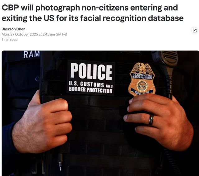 近日,美国国土安全部(DHS)和海关与边境保护局(CBP)宣布,将扩大目前在陆地、海港和机场实施的拍照与数据收集措施,政府可要求所有非公民在出入境时进行面部识别采集,并在必要时采集其他生物识别(如指纹等)。