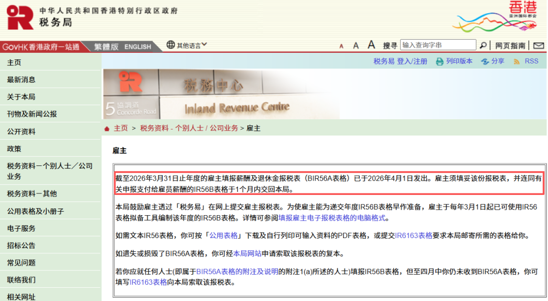 BIR56A的交表截止日,同时也是个人报税表BIR60的预计发出日。