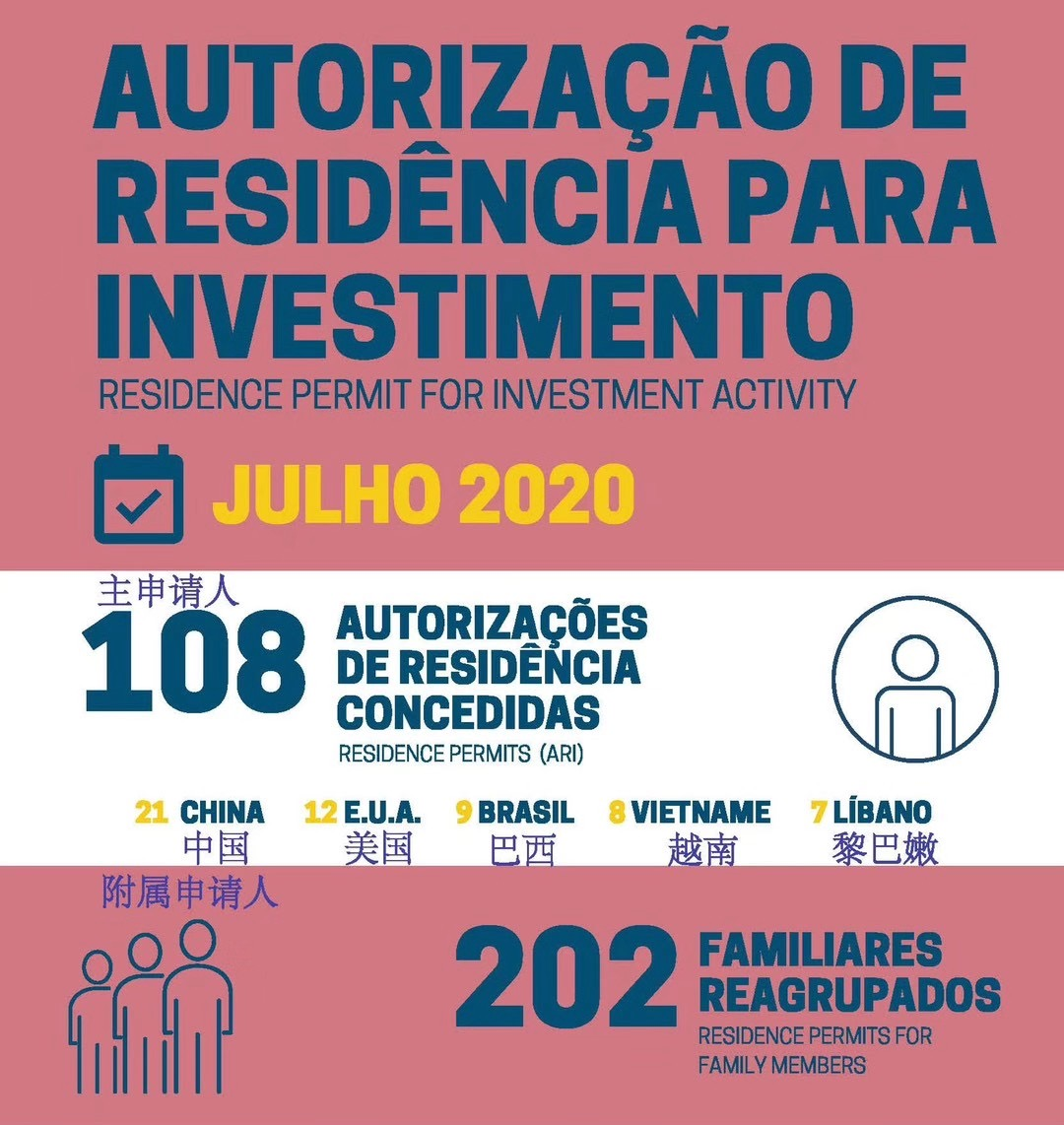 据《dinheirovivo》报道,根据葡萄牙外国人及边境事务管理局(SEF)发布的信息显示, 2020年7月共计108位主申请人和202位附属申请人获批葡萄牙黄金签证,投资额为5600万欧元。其中,中国人在获得黄金签证列表中名列第一。
