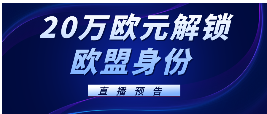 【直播预告】抢位倒计时!手把手教您用20万欧元撬动欧盟身份~