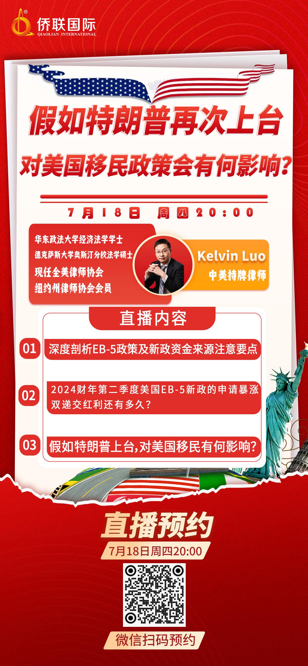 3月22日(本周六)下午14时,侨联国际特邀战略合作伙伴美国老牌区域中心CMB的资深专家、精通税务领域的专业人士以及富有实战经验的投资专家,共同为投资人呈献一场美国主题讲座活动。届时各位专家将凭借深厚的专业知识与丰富的实战经验,从不同角度深度剖析当下美国移民的最新政策风向、税务处理的关键要点以及房产投资潜藏的丰厚机遇,为投资人答疑解惑。