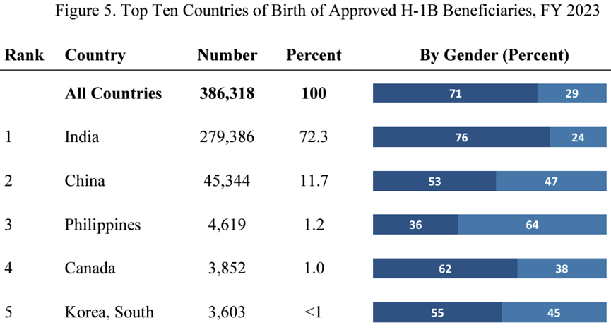 尽管尽管在声明中USCIS未正式公布今年H-1B工作签证第二轮抽签的具体日期及结果公布时间,也未明确透露第二轮将抽取的确切名额数量,但根据过往经验H-1B总体中签率低,而中国申请人的中签率更低! 日前,美国移民局公布了2023财年H-1B申请获签者相关数据,从国籍来看,印度籍H-1B获签数量高达72.3%,占据了绝对优势;中国籍获签量虽位居第二,但却只占11.7%!