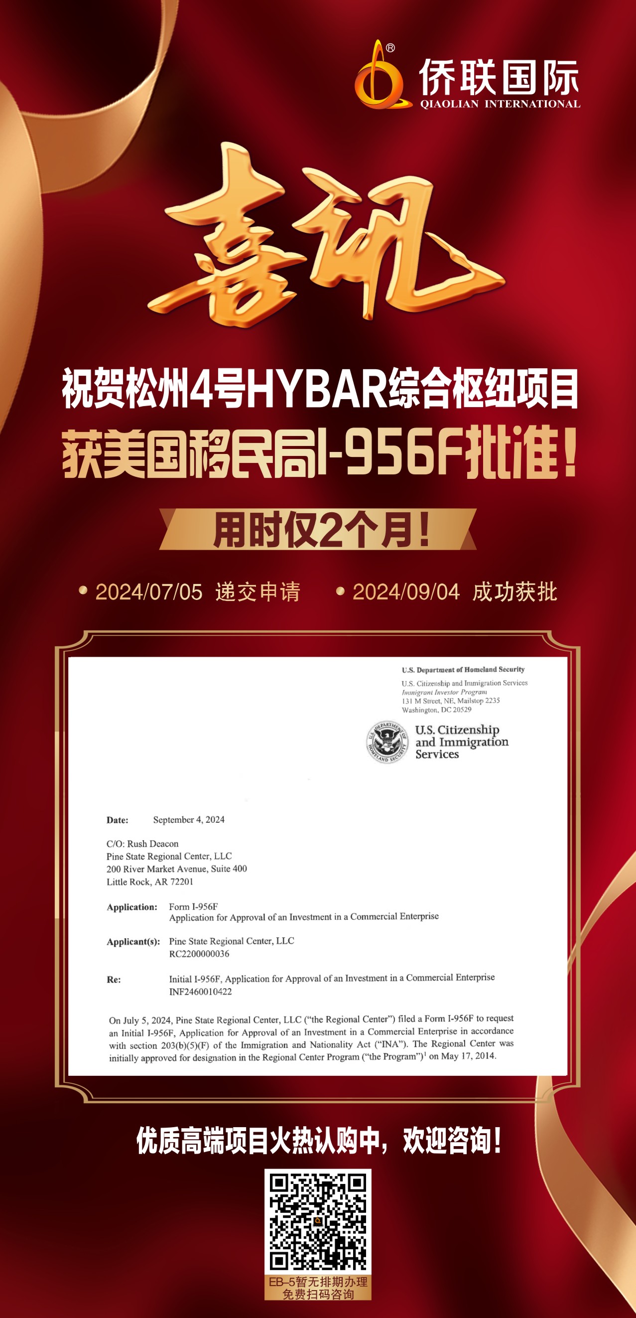 近日,侨联国际的投资人不断收获喜讯——由侨联国际精心甄选的两大项目分别刷新记录,仅用1-2个月时间便成功获得了美国移民局I-956F批准。