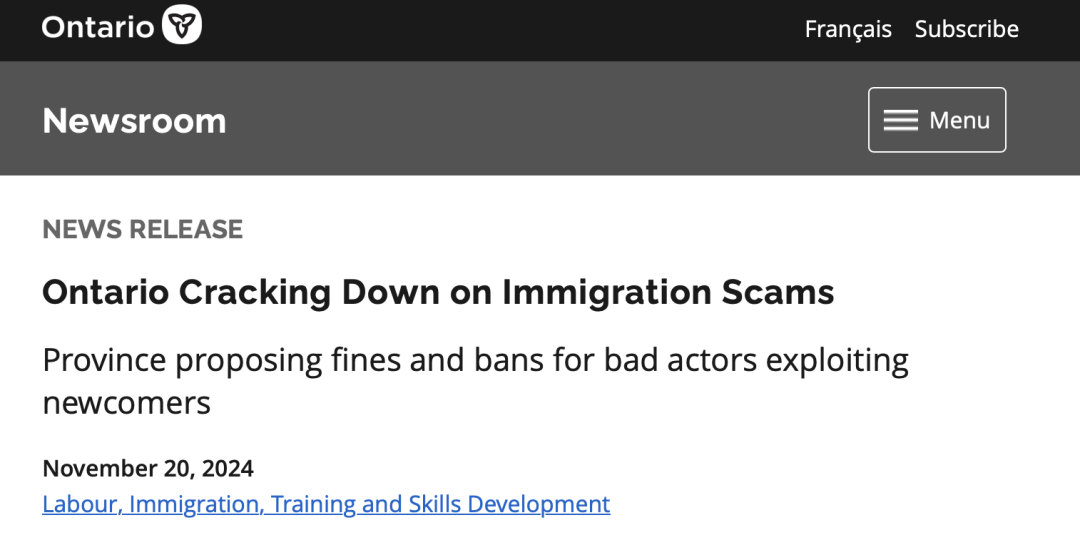 11月18日,加拿大总理特鲁多在官方视频中坦诚地指出,加拿大政府在过去几年的移民政策中犯下了错误。他承认,政府本应在疫情结束后更迅速地采取行动,收紧移民政策,以应对由虚假学院和雇主机构带来的移民欺诈问题。这些机构利用移民制度的漏洞,打着合法的幌子招揽国际学生和工人,背地里收取高额费用,甚至承诺虚假的永居机会,严重破坏了移民程序的完整性。2天后加拿大移民局随即再次重拳出击打击移民签证欺诈,开展了接二连三的打击行动。首先,加拿大时间11月20日,安省移民局宣布计划推出一项重要立法,旨在打击利用加拿大移民体系漏洞进行移民欺诈。该立法提议,对违反该法案的罪行施加更严厉的惩罚,包括对参与或辅导欺诈的移民代理人处以至少三年和最多十年的执业禁令,以及对被判犯有严重罪行(如人口贩运或扣留护照)的个人实施终身禁令,对不诚实的代表和雇主的最低行政罚款金额将从2,000加元提高到10,000加元。