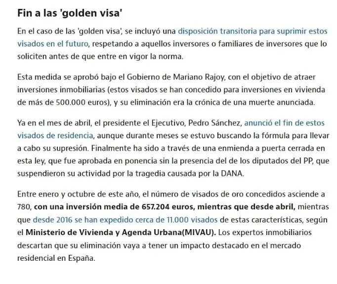 当地时间12月19日,西班牙议会以177票赞成,170票反对的结果,通过了包括“取消黄金签证计划”在内的《司法效率法案》,预计将在3个月内正式生效。这也意味着,自2013年起实施的西班牙50万欧元购房移民政策,将在2025年正式落幕,欧洲移民的选择进一步减少。