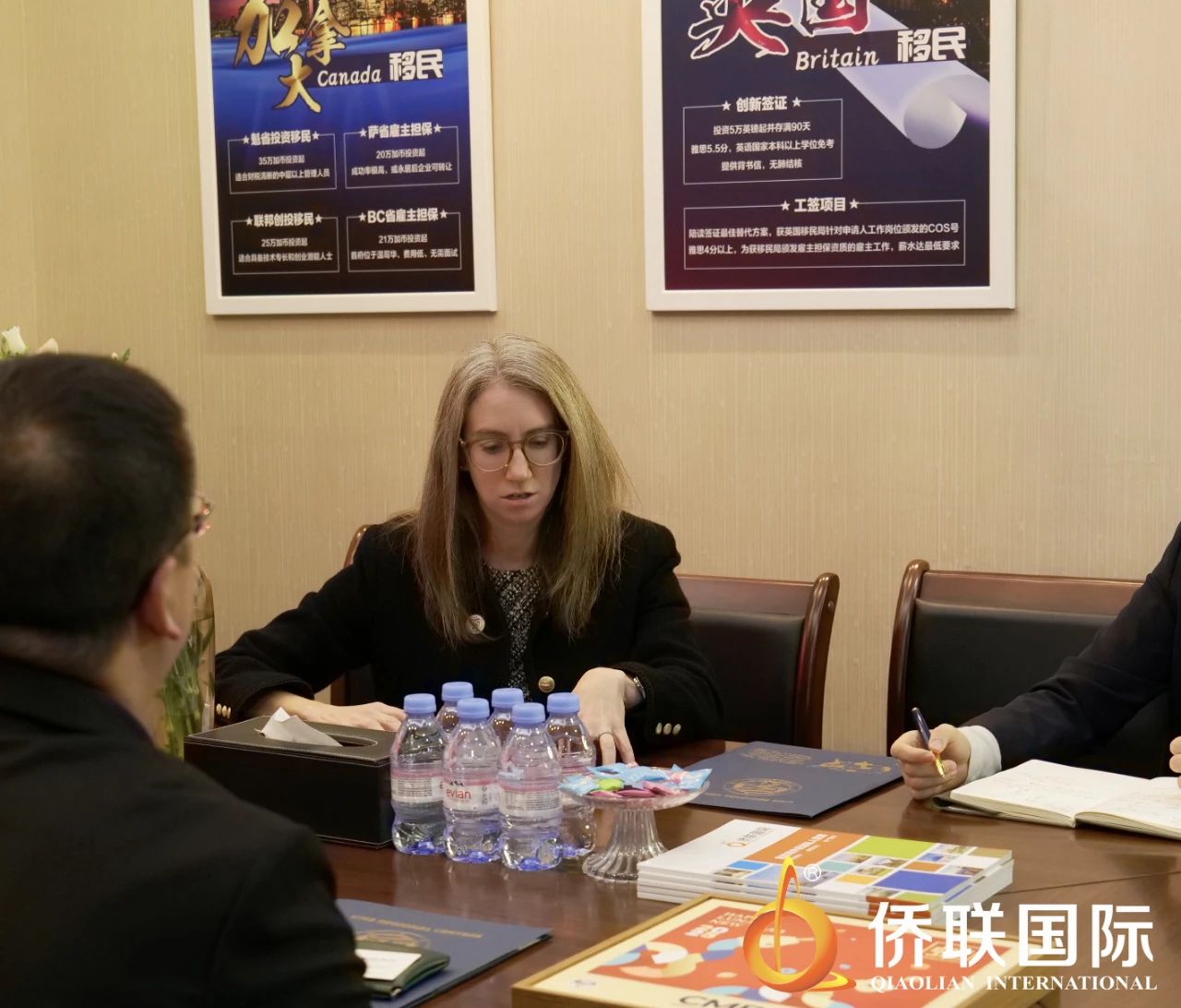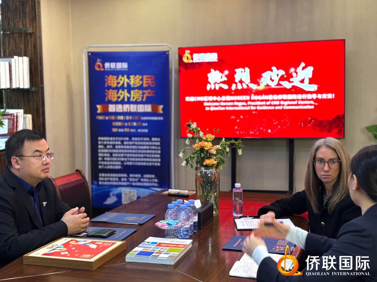 2025年1月8日,值此侨联国际10周年之际,战略合作伙伴美国CMB区域中心总裁Noreen Hogan女士率公司代表团一行访华,新年首站莅临侨联国际总部,侨联国际总经理张彦强先生携公司管理层热情接待了Noreen Hogan总裁一行,双方对EB-5投资移民发展趋势、未来商业合作契机及其他共同关心的问题展开了深入交流。