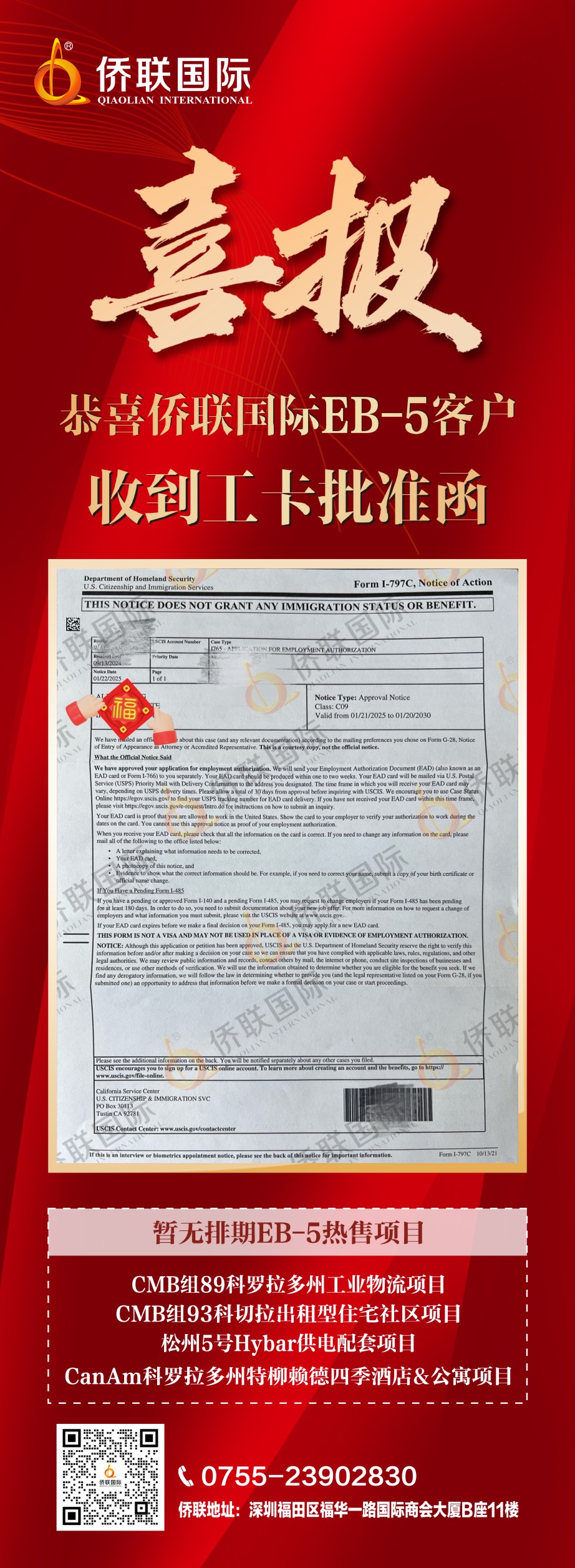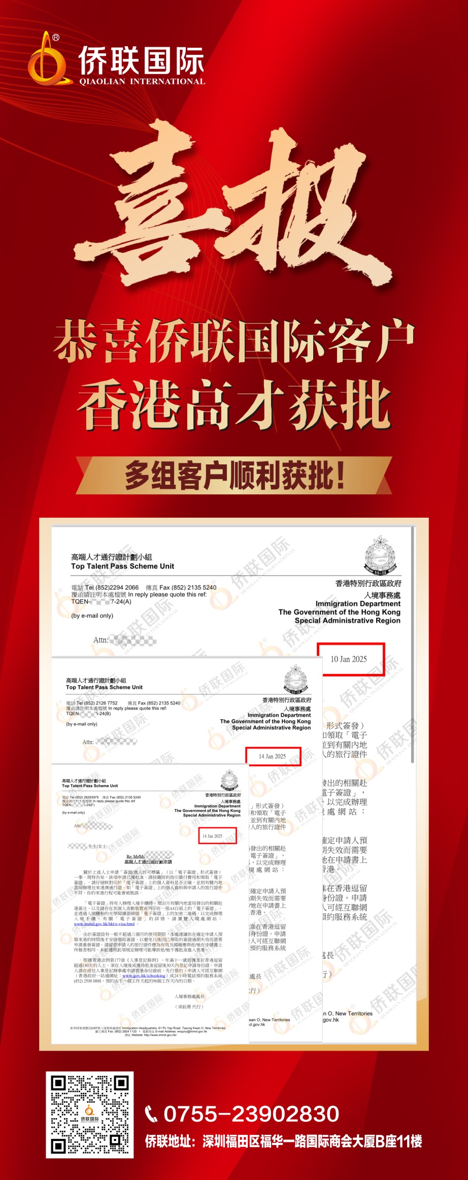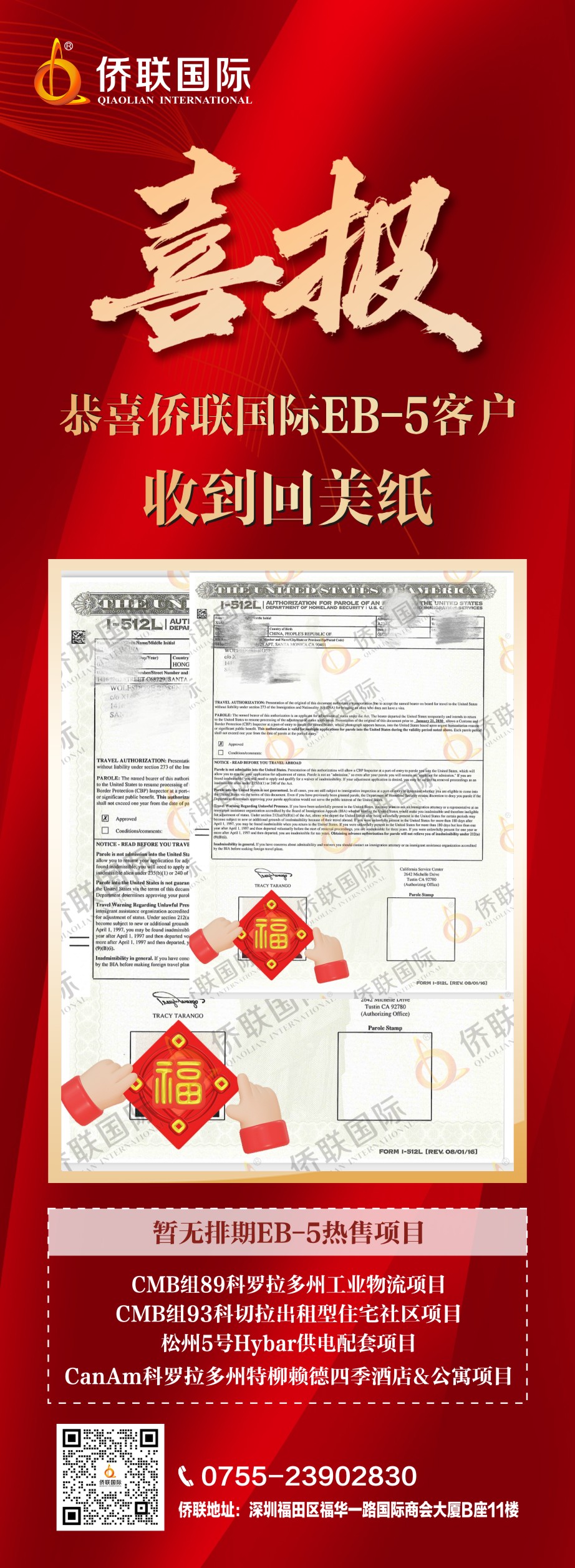 值此新春之际,侨联国际频传佳音,多组客户分别获得美国、加拿大、希腊、新加坡、中国香港项目批准!