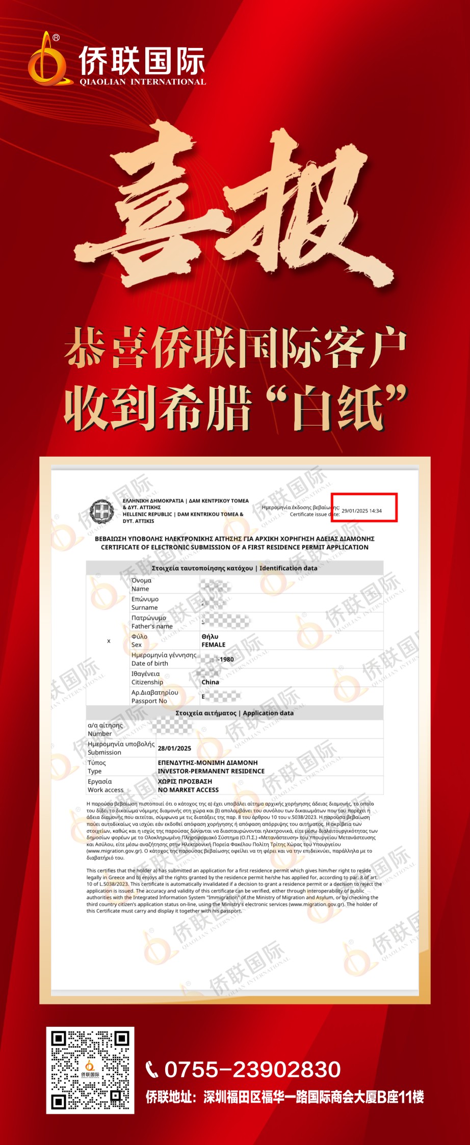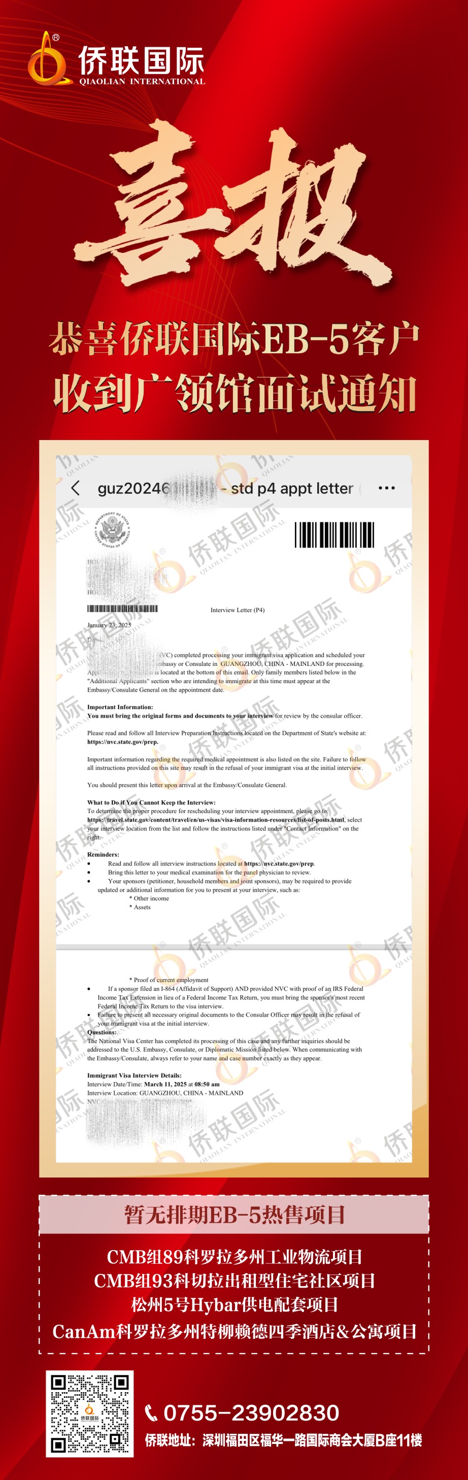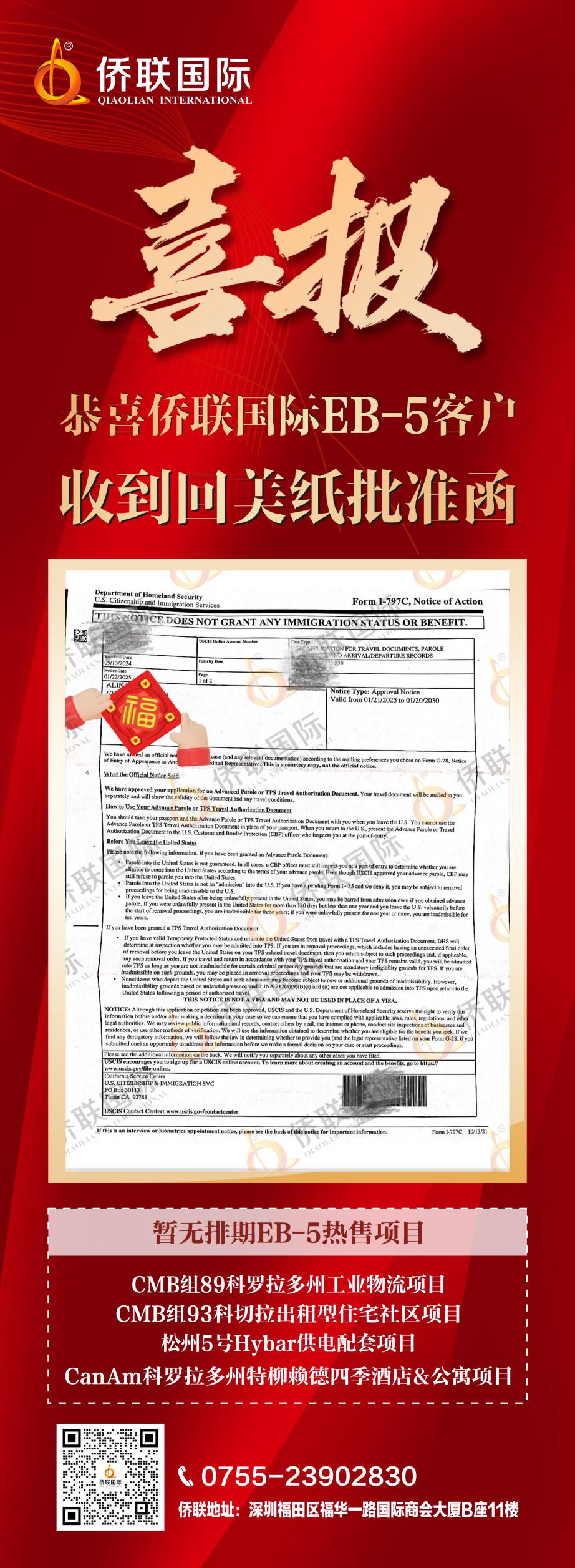 【喜报频传】恭喜侨联国际多组客户获美国、加拿大、希腊、新加坡及中国香港项目批准!