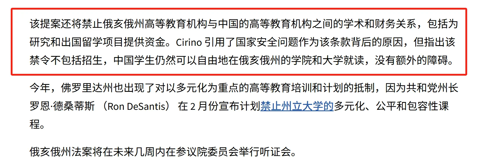 此外,这个法案只在俄亥俄州生效,美国其他州并不受影响。像哈佛、耶鲁、普林斯顿、斯坦福、麻省理工等,这些高校均不在这个范围内,大家依旧可圆梦。