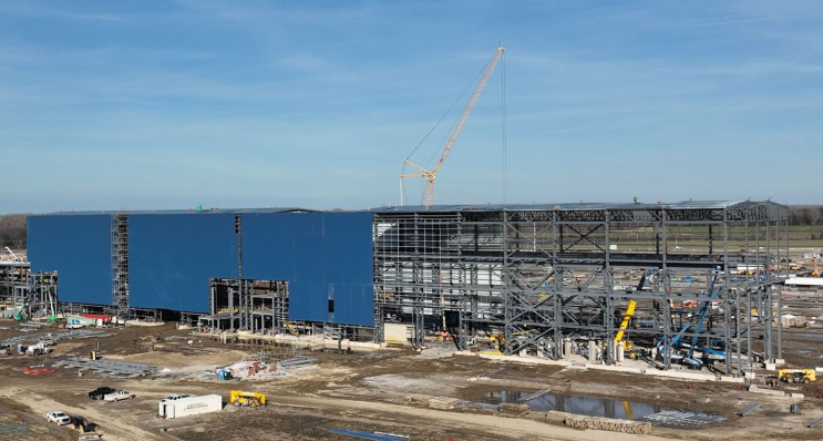 △电池储能系统而在建设方面,2025年第一季度厂区土建部分的作业比重进一步减少,在总承包商Lexicon的带领下,近10组分包及专业工程团队的工作中心更侧重于将厂房钢结构,外立面和屋顶模块尽快安装就位。不过内部、生产设备以及配合设备安装的地基、管线、照明水电等工程,则较上一报告周期有了明显提速,可见这家高科技钢厂的“内脏”部分已初见雏形。接下来,侨联君将给大家分享下3月份该项目更为细致的建造进展。