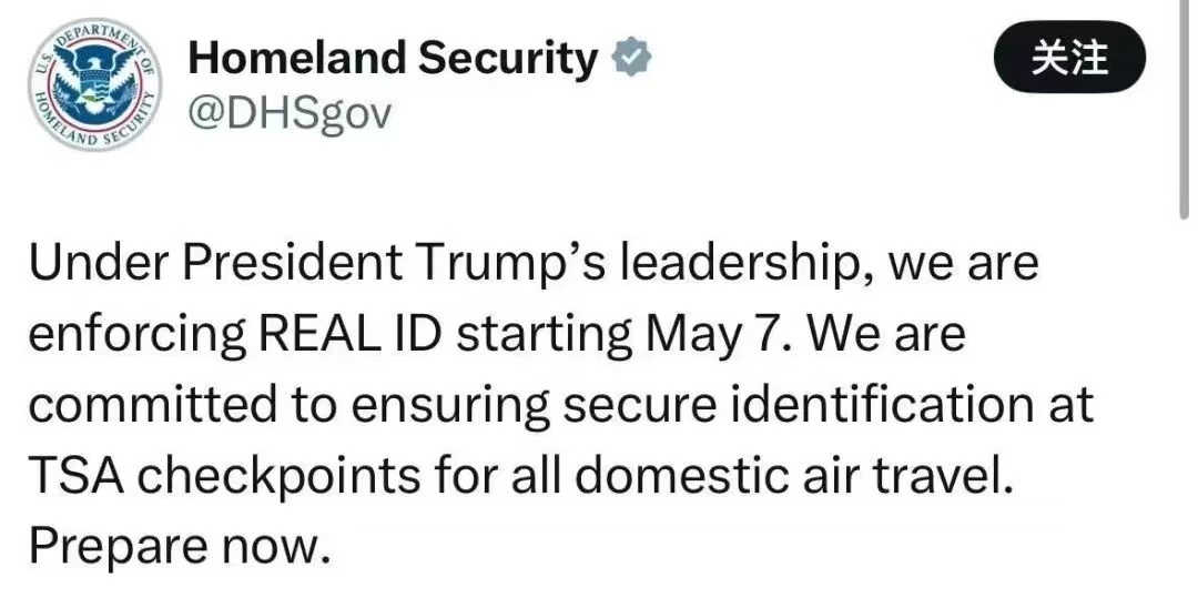另外据TSA和DHS确认,哪怕航班为短程、非国际线,也必须使用符合REAL ID法案的证件过安检。可见,过去许多非法移民在美国国内“低调移动”的方式将被有效切断。