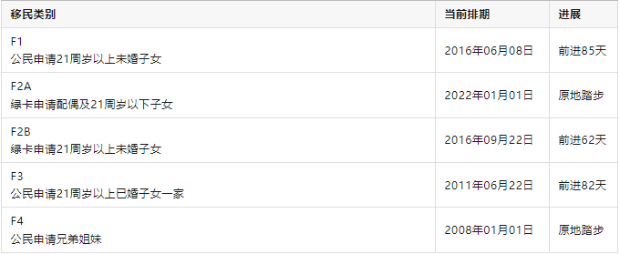 第一优先EB1类别,当前排期2022年11月08日,原地踏步;