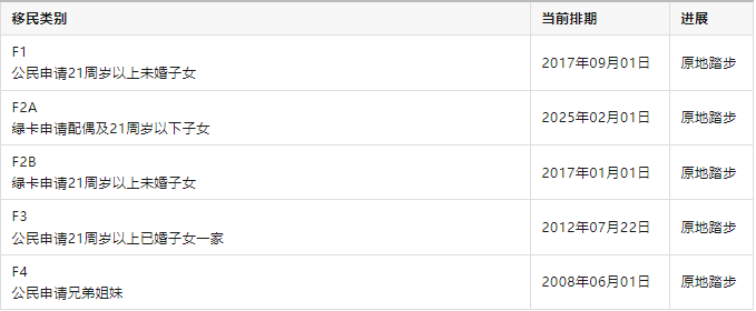 第一优先EB1类别,当前排期2023年1月1日,原地踏步;