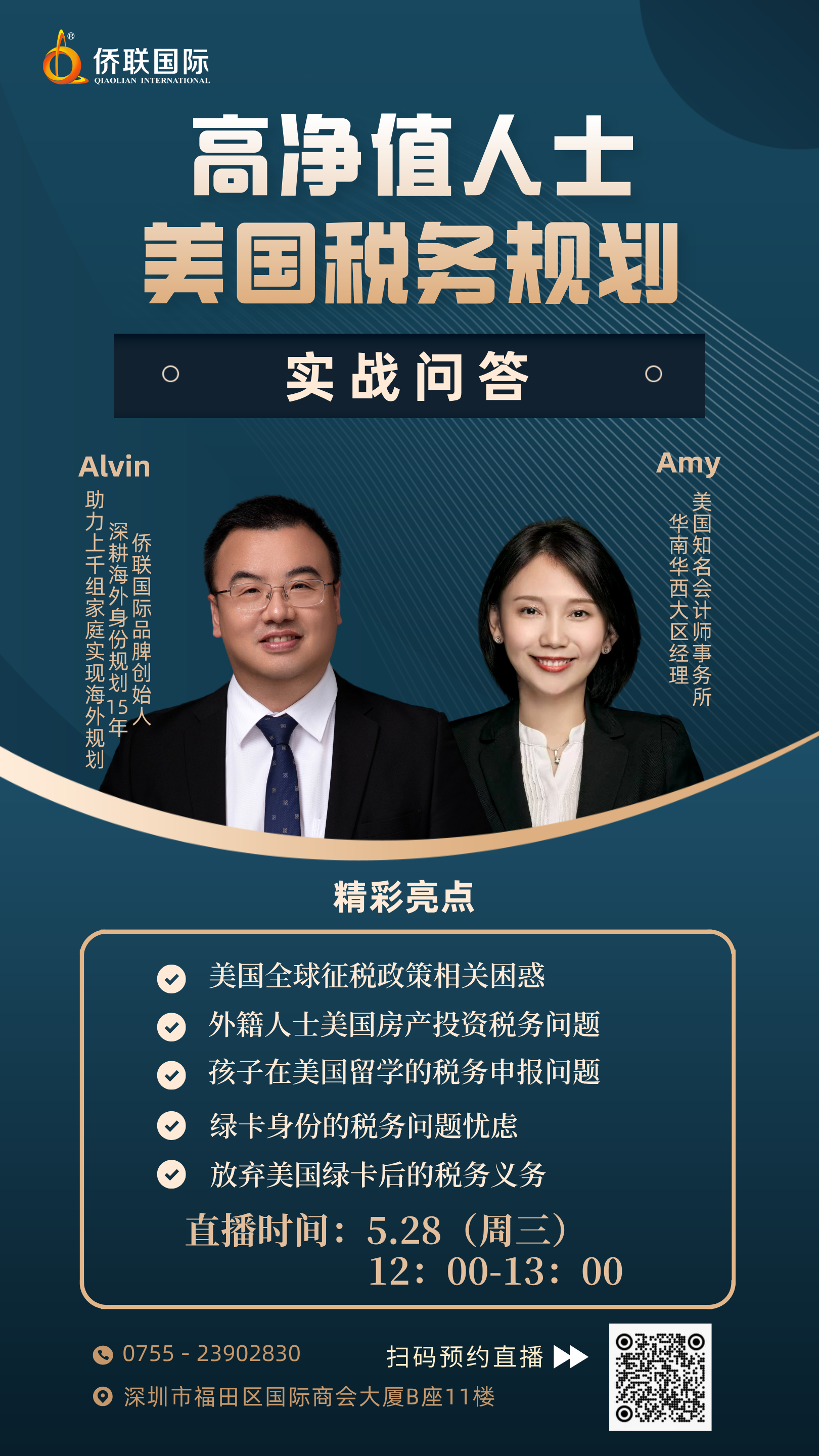 借此机会,侨联君来给大家送福利了!5月28日中午12点,侨联国际特邀美国知名会计师联合事务所华南华西大区经理Amy,为大家带来干货满满的分享!