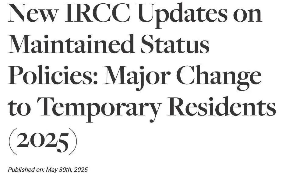 近日,加拿大移民局(IRCC)正式升级了“身份维持”(Maintained Status)规则,终结了此前模糊的"默许身份"(Implied Status)政策。