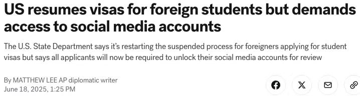 不过,所有申请人必须解锁社交账户,以供美国政府审查。