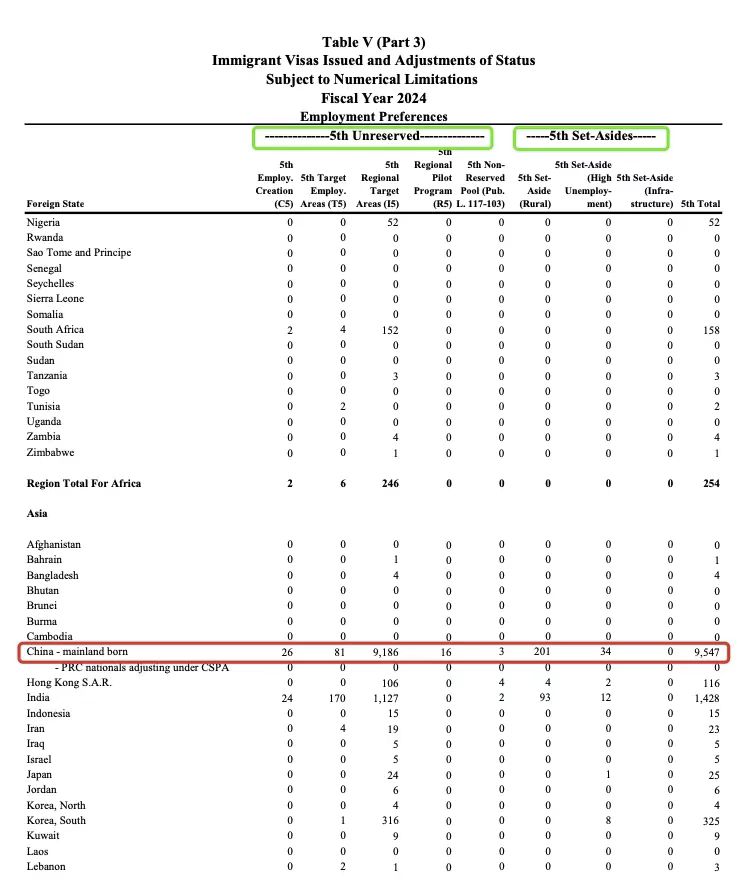 当地时间7月8日,美国国务院公布了2024财年美国移民绿卡发放情况,其中一份是领馆条线签证发放的统计,另一份则是包含移民局I-485审批数据在内的,也就是所有EB-5签证发放的统计。
