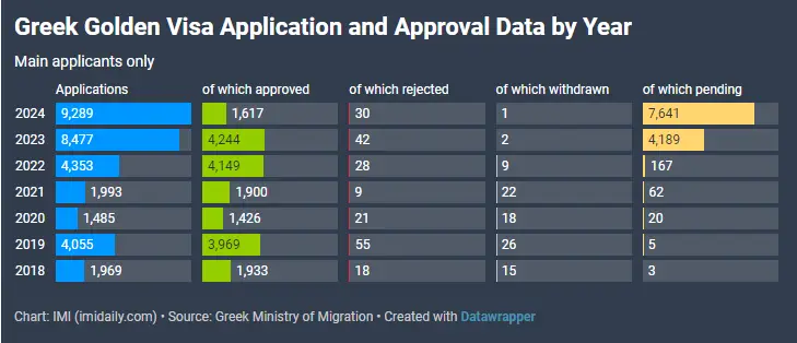 根据希腊政府公布的年度数据,2024年希腊再次刷新记录,全年共收到9289份申请,较2023年增长10%,创下该计划实施以来的新高。