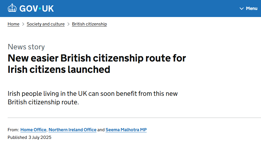 近日,英国政府发布公告,宣布将调整爱尔兰公民入籍英国的途径。