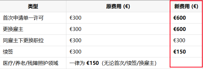 变化4:费用结构调整(首次申请、换雇主涨价,续签降价)