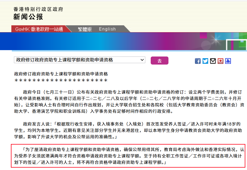 刚刚,香港政府发布了《政府修订政府资助专上课程学额和资助申请资格》,也就是说最新香港本地生定义终于尘埃落定了!