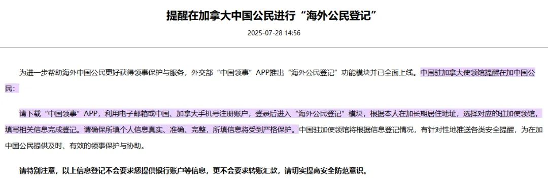 近来,中国驻美国、加拿大使领馆紧急发布通知,外交部“中国领事”APP推出的“海外公民登记”功能模块已全面上线。