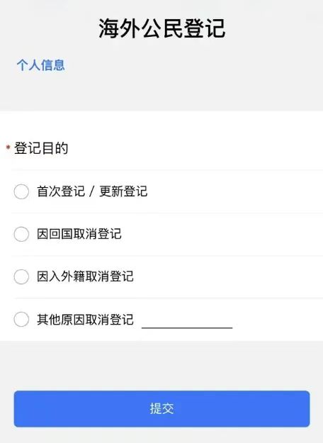 对于“海外公民登记”对象而言,实际上所有在海外的中国公民(包括留学生、居住、工作、旅游或短期停留的中国公民),均可以进行登记。