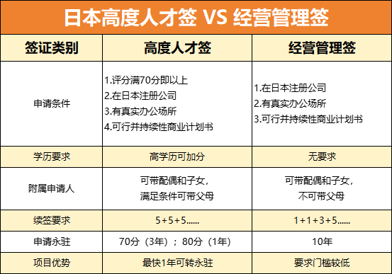 资金较充足的情况下,可考虑申请高度人才经营管理签证(积分制),最快1年可申请永驻。为长期在日本生活和发展提供更便捷的途径。