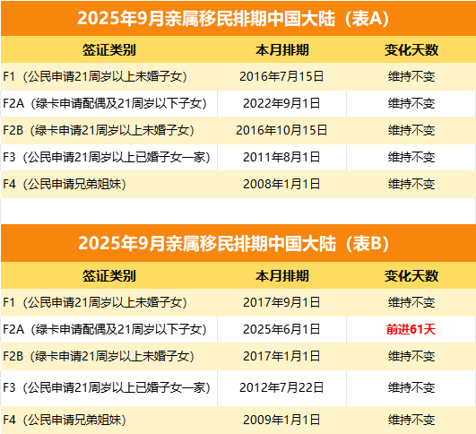 当地时间8月12日,美国国务院更新了2025年9月的移民排期表,这也是本财年的最后一个月的排期公告。