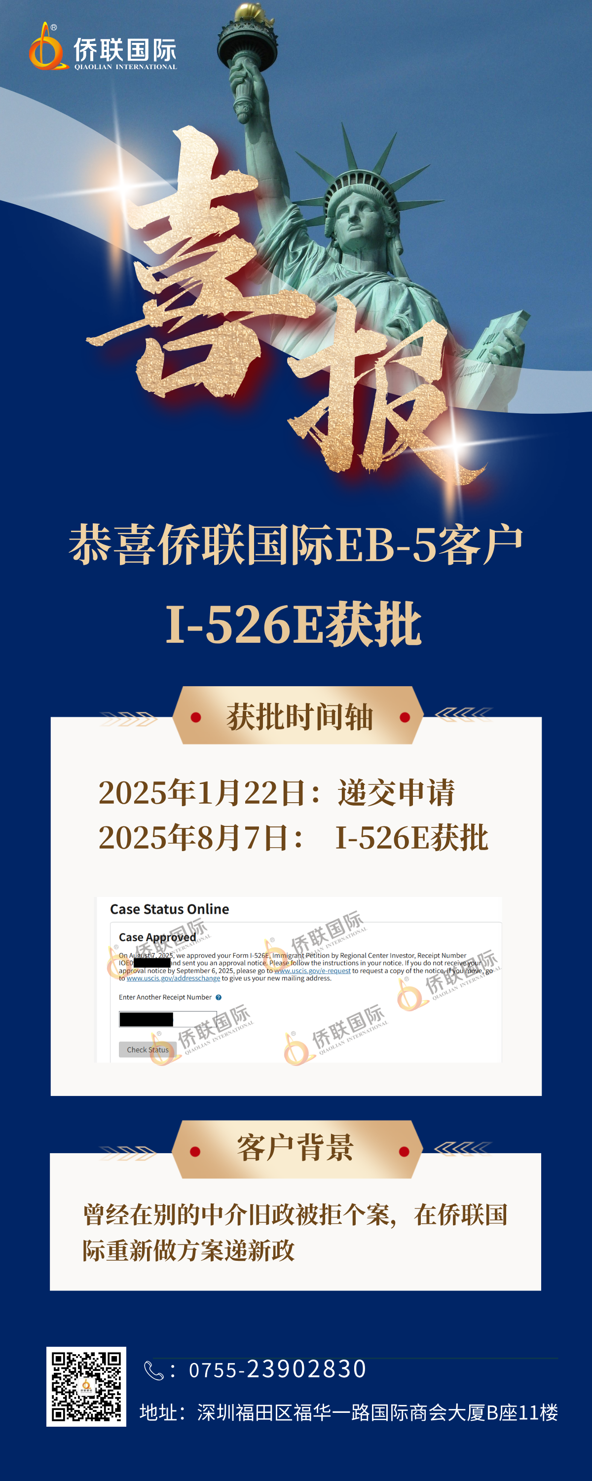 △以上为侨联客户6个多月获批I-526E的喜讯