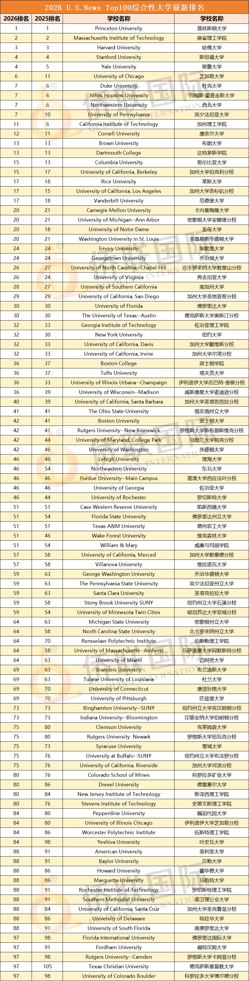 9月23日,全球权威教育排名机构 U.S.News 发布了2026年全美大学最新排名。该排名系统延续了40余年,可谓是学生选校时参考的重要风向标了。