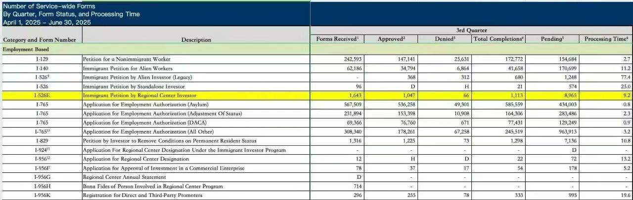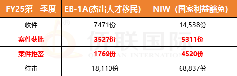近日,美国移民局(USCIS)发布了2025年Q3(4月-6月)的I-140职业移民申请审核数据。与以往季度不同的是,其中职业移民NIW类别的通过率出现骤降、积压激增,而EB-1A也有所下滑。