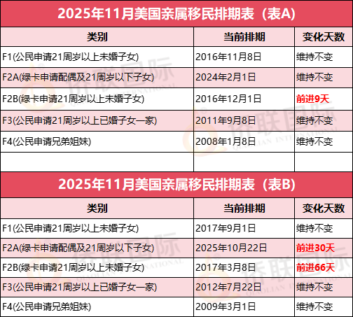 当地时间2025年10月15日,美国国务院公布了2025年11月美国移民排期。