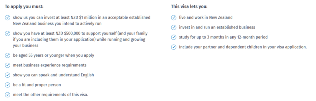 需注意的是,即使申请人通过快速通道(200万纽币)申请居留签证,申请人仍须累计经营企业至少3年。移民局会在申请人的居留签证中附加相关条件,以确保满足此要求。保持原有企业的持股比例;