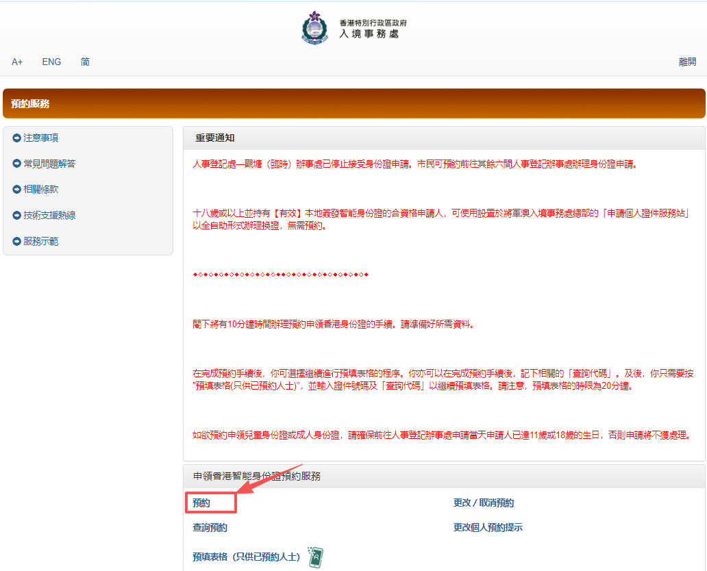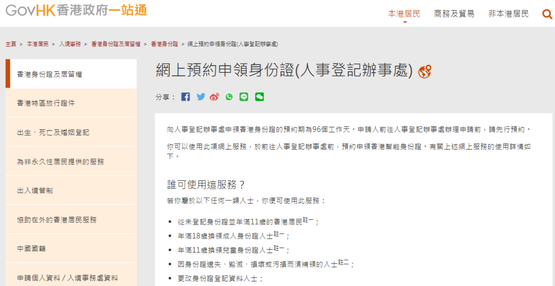 下面以入境事务处官网链接为例,一起来Get香港身份证预约流程叭~