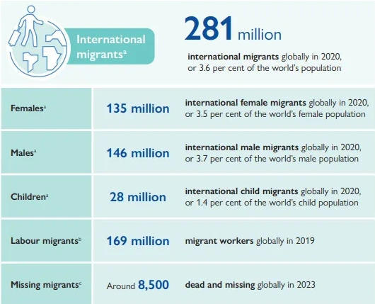 据联合国国际移民组织(IOM)发布的《2024世界移民报告》显示,目前全球的国际移民数量已超2.81亿国际移民,约占全球总人口的3.6%。