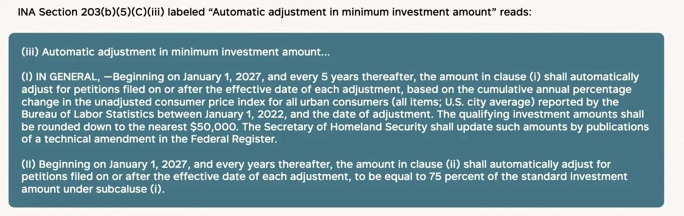 早在2022年,EB-5新政就有规定:其最低投资金额需按照通胀指数(CPI)进行调整。