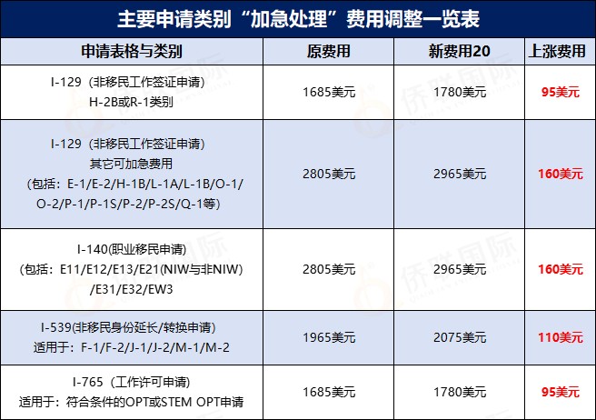 所有就业类移民类别(EB-1、EB-2、EB-3等):由2805美元涨至2965美元。