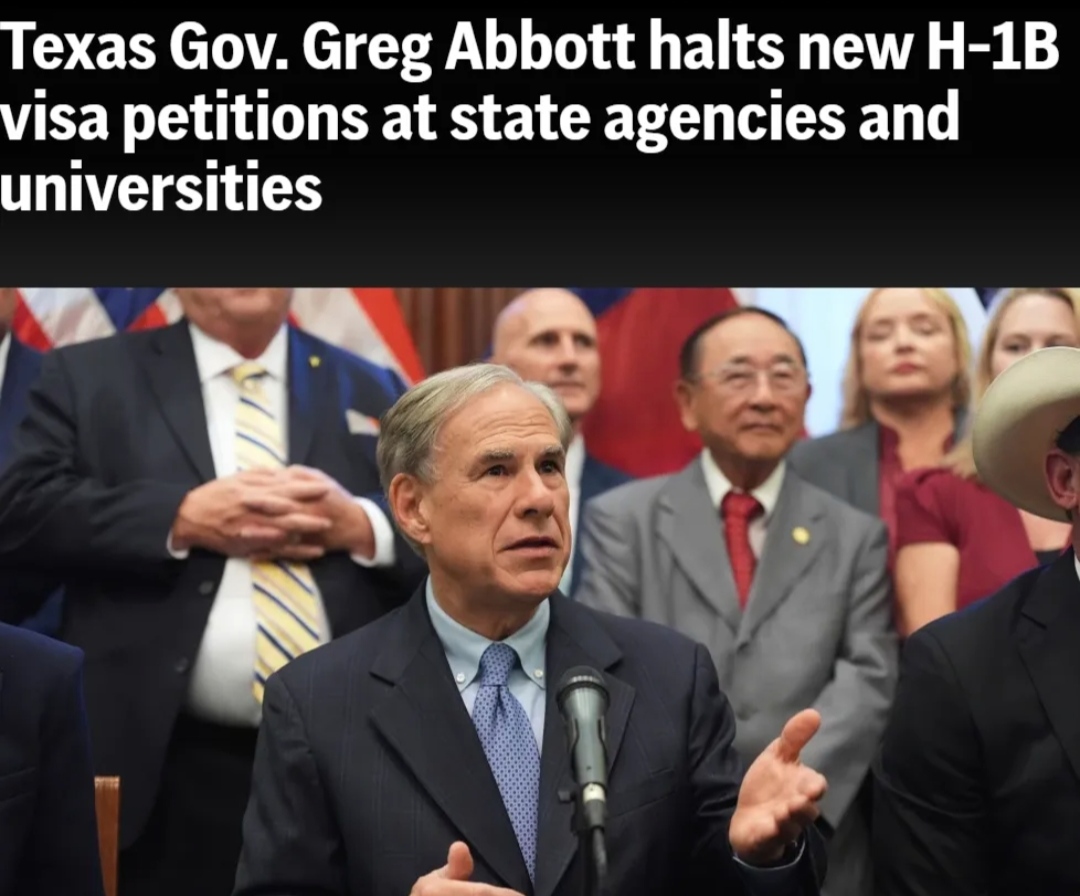 2026年1月27日,美国德克萨斯州州长格雷格·阿博特正式下令,要求所有州政府机构和公立大学系统立即冻结新的H-1B工作签证申请。