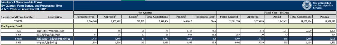 尽管2025财年第四季度的递件量较前一季度略有回落,但纵观整个2025财年,新法EB-5的递件总量依然创下历史新高。其I-526E申请总量达到了6,307份,而目前,移民局手上积压的待审I-526E申请则高达9,005份。