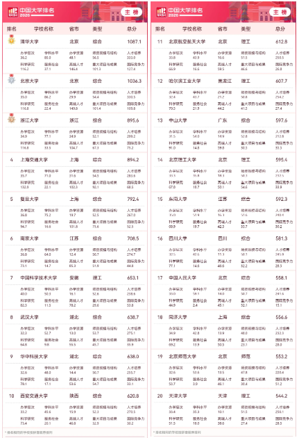 值得关注的是,此份榜单的覆盖面相当广,共有590所高校上榜。其中,清华大学、北京大学、浙江大学,连续第12年包揽全国前三甲,实力稳如磐石;上海交通大学、复旦大学则紧随其后,分别位列第四,第五位。
