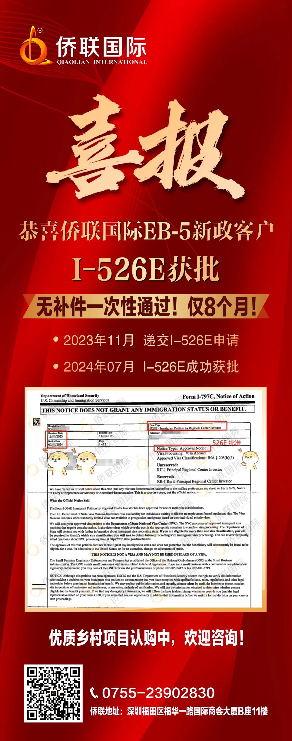 【喜讯】侨联国际甄选的两个项目仅用时1-2个月成功获批1-956F!