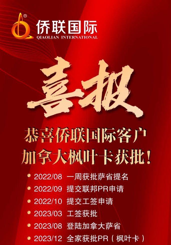 喜报丨恭喜侨联客户获批加拿大枫叶卡!