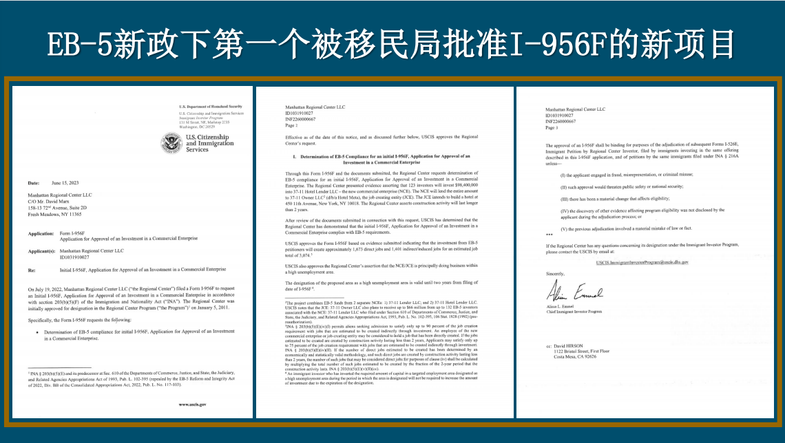 【重磅喜讯】美国EB-5新政下的城市高失业通道项目首个I-526E获批!