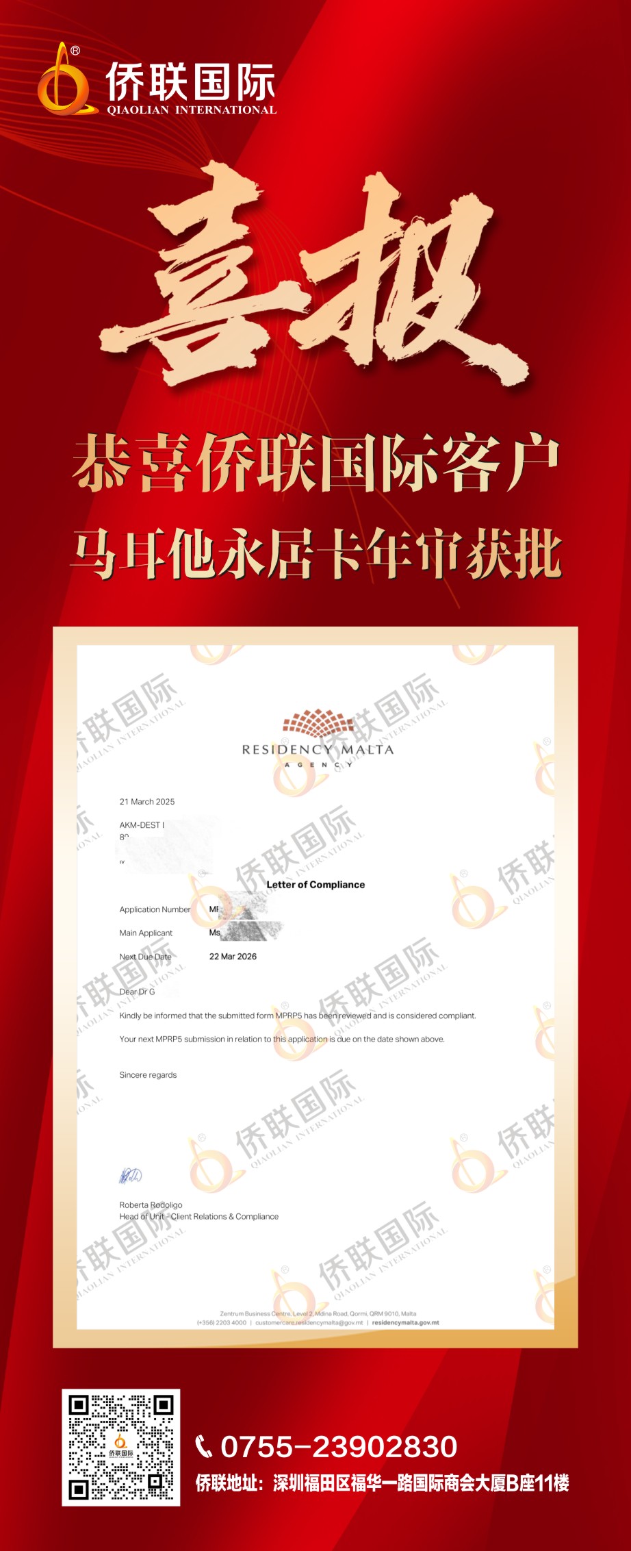 恭喜侨联国际客户马耳他永居卡年审获批